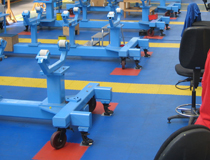 這是一款使用在組裝車間的地板,具備耐壓、防砸、耐磨損的地板。 采用藍色的耐壓、防砸、耐磨損車間地板為主,運用黃色作為分界線,和車間的設備等整體色調協調一致,讓車間地面既實